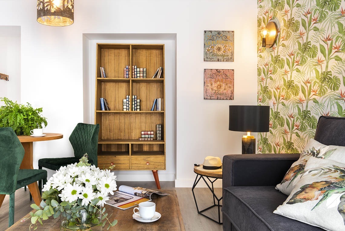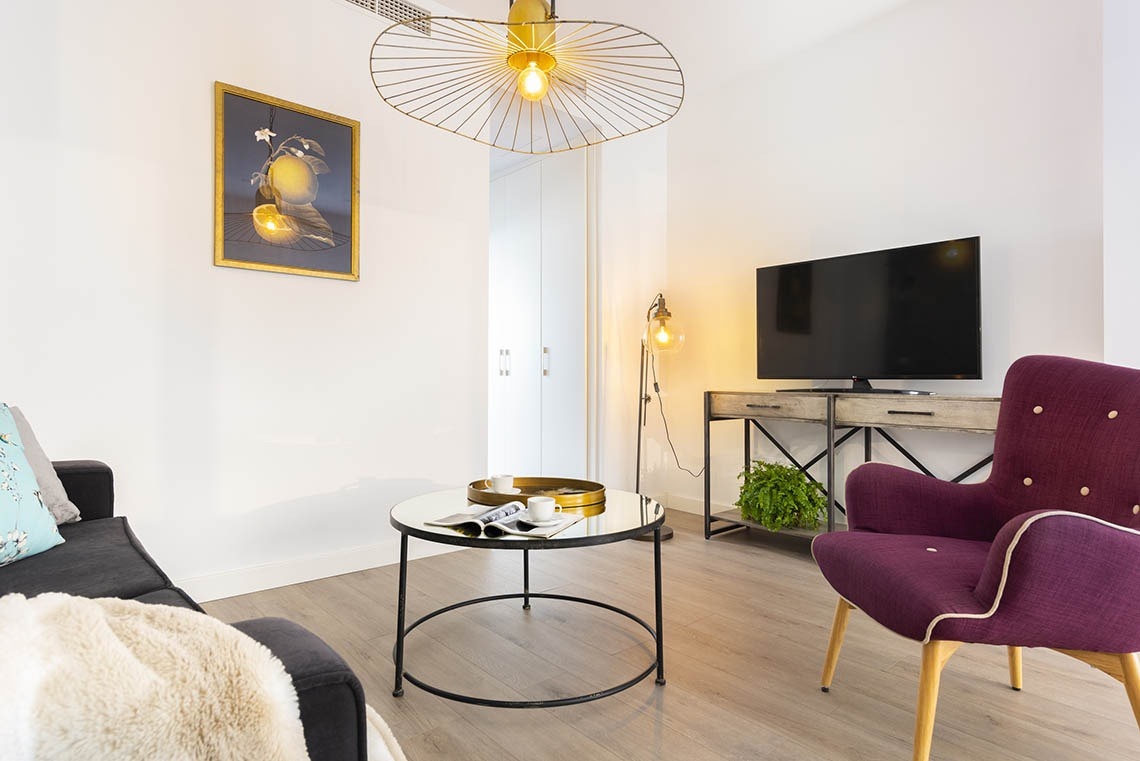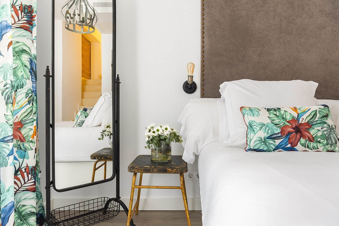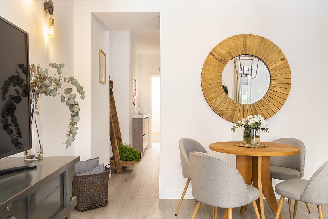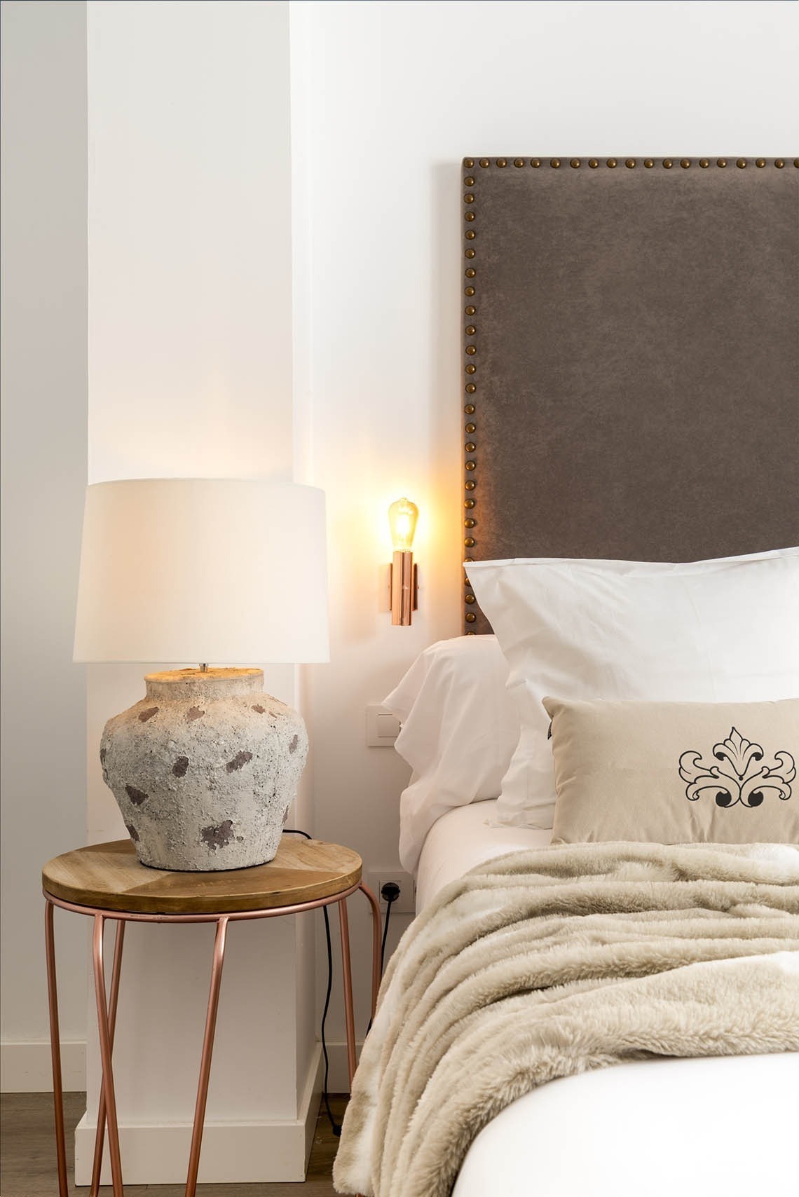 Nuestro apartamento con vistas al patio interior se compone de una zona abierta en la que conviven cocina y sala de estar en un mismo espacio. El dormitorio principal está equipado con una cama tamaño King Size (180 x200 cm) y zona de trabajo. El baño está totalmente equipado con ducha.