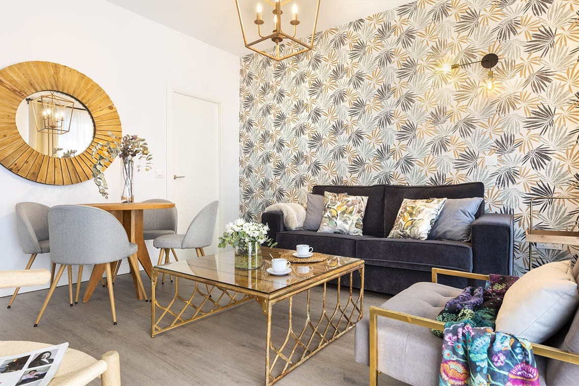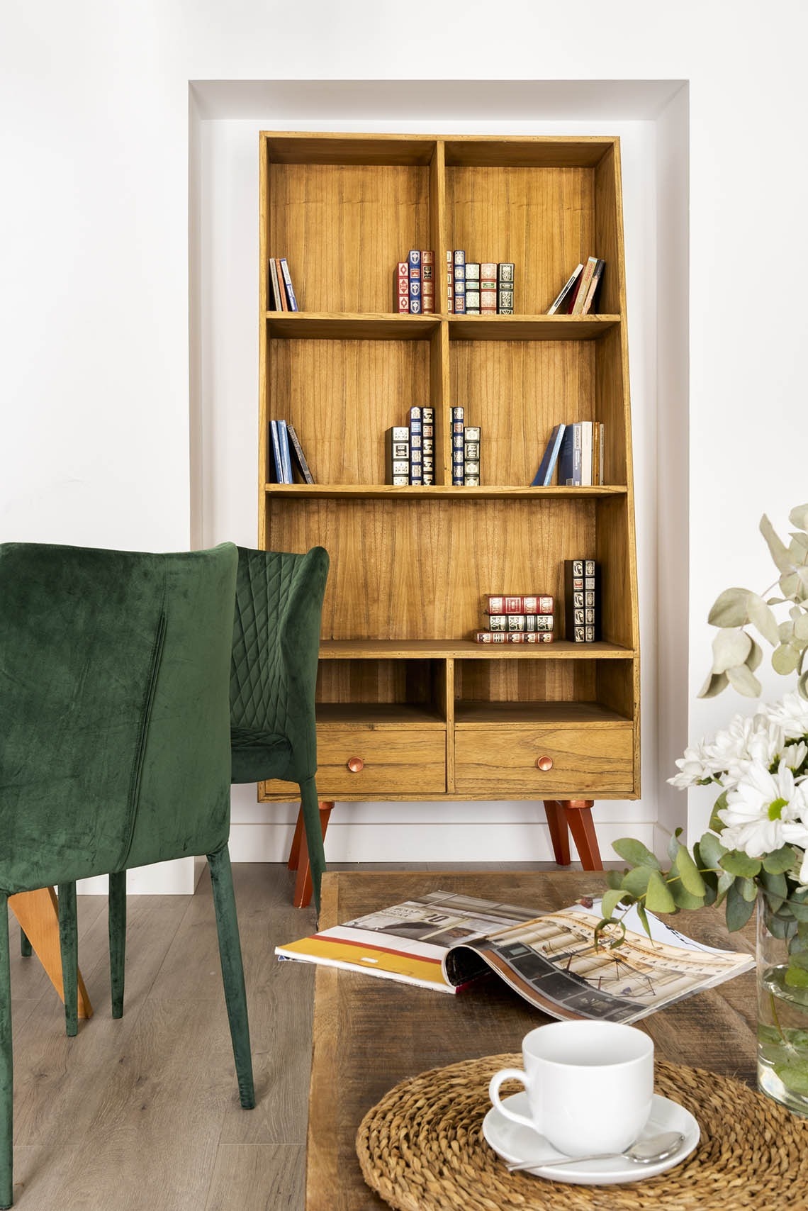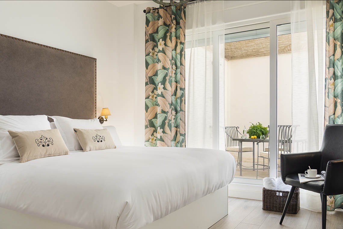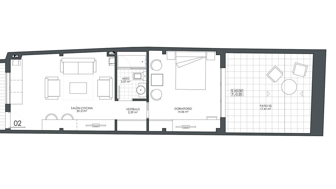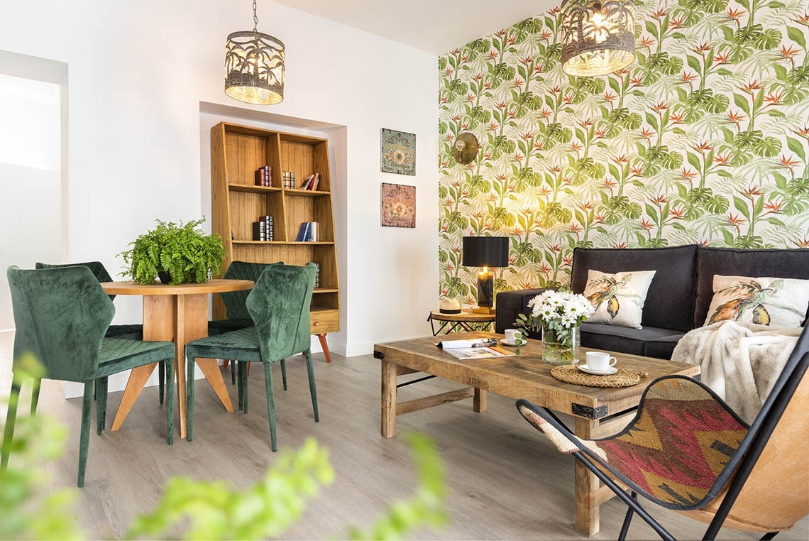 Nuestro apartamento con vistas al patio interior se compone de una zona abierta en la que conviven cocina y sala de estar en un mismo espacio. El dormitorio principal está equipado con una cama tamaño King Size (180 x200 cm) y zona de trabajo. El baño está totalmente equipado con ducha.